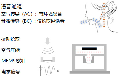 基于優(yōu)越性能/可靠性以及超低功耗,拾取骨導(dǎo)語(yǔ)音通道信號(hào),結(jié)合算法,改善語(yǔ)音交互質(zhì)量。